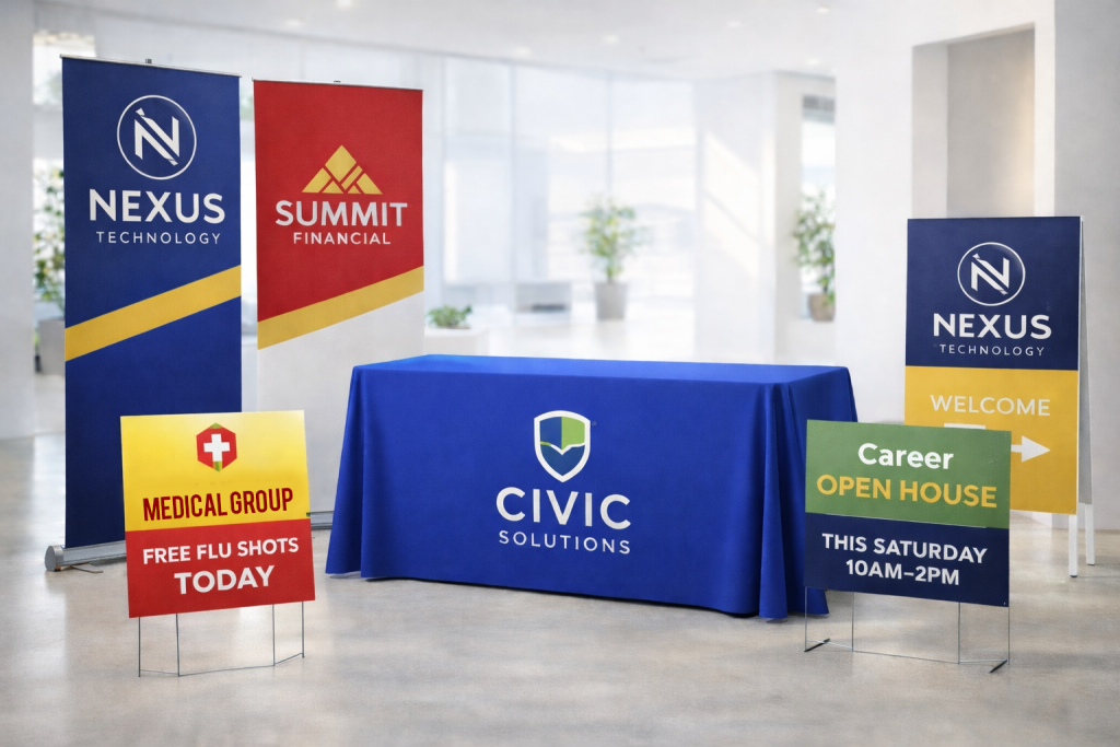 Event & Promotional Displays - Banners, table covers, and signage for visibility