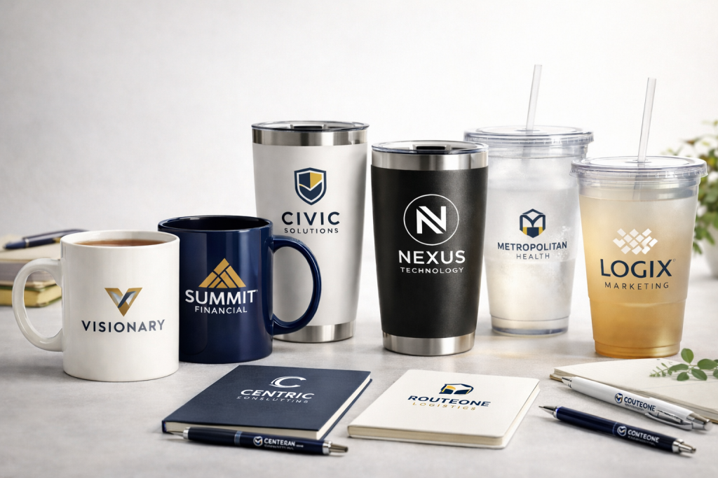 Branded Drinkware - Custom tumblers, mugs, and promotional items.